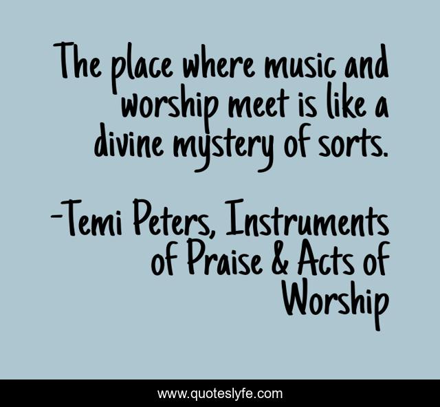This page presents the quote "The place where music and worship meet is like a divine mystery of sorts.". Author of this quote is Temi Peters, Instruments of Praise & Acts of Worship. This quote is about voice, worship, praise-and-worship,.
