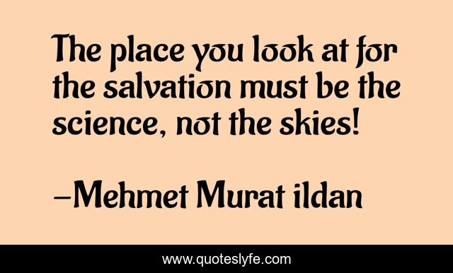 This page presents the quote "The place you look at for the salvation must be the science, not the skies!". Author of this quote is Mehmet Murat ildan. .