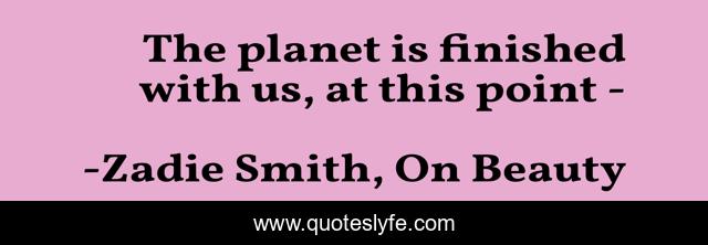 "Zadie Smith, On Beauty Quotes." Quoteslyfe.com, 2025. Fri. 05 Dec. 2025. <https://www.quoteslyfe.com/quote/The-planet-is-finished-with-us-at-192634>.