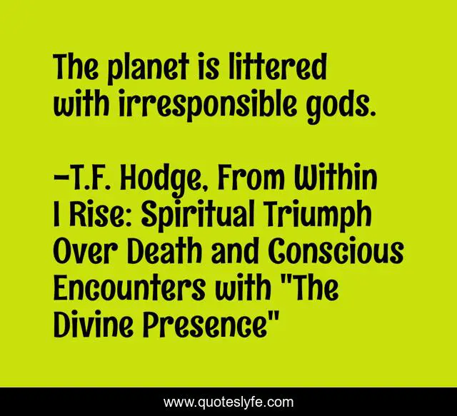 "T.F. Hodge, From Within I Rise: Spiritual Triumph Over Death and Conscious Encounters with "The Divine Presence" Quotes." Quoteslyfe.com, 2025. Mon. 08 Dec. 2025. <https://www.quoteslyfe.com/quote/The-planet-is-littered-with-irresponsible-gods-211865>.
