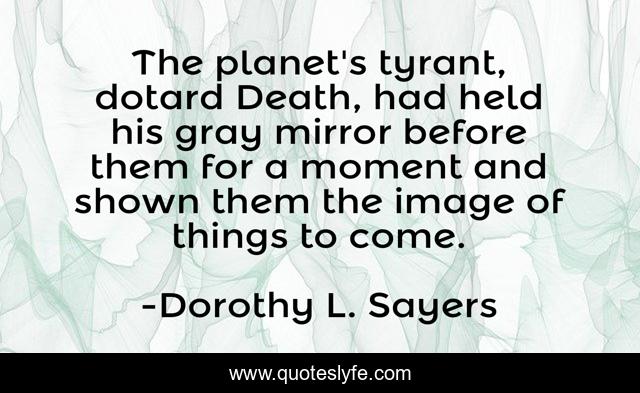 This page presents the quote "The planet's tyrant, dotard Death, had held his gray mirror before them for a moment and shown them the image of things to come.". Author of this quote is Dorothy L. Sayers. .