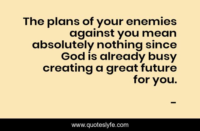 This page presents the quote "The plans of your enemies against you mean absolutely nothing since God is already busy creating a great future for you.". Author of this quote is . .