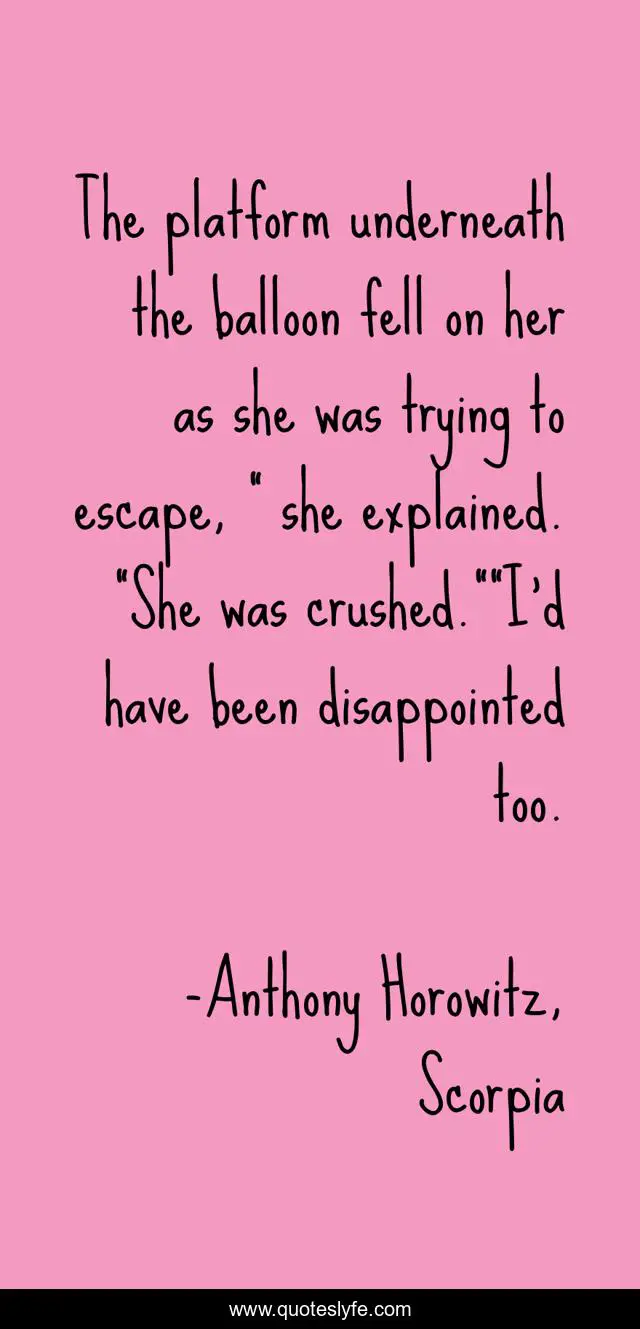 "Anthony Horowitz, Scorpia Quotes." Quoteslyfe.com, 2025. Fri. 05 Dec. 2025. <https://www.quoteslyfe.com/quote/The-platform-underneath-the-balloon-fell-on-55326>.