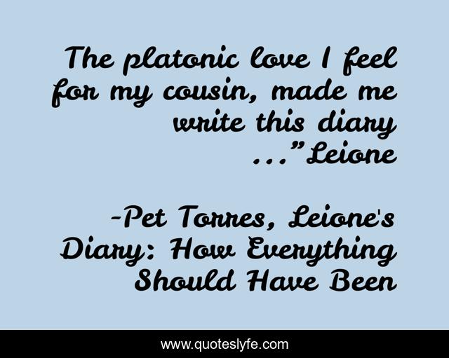 This page presents the quote "The platonic love I feel for my cousin, made me write this diary ...”Leione". Author of this quote is Pet Torres, Leione's Diary: How Everything Should Have Been. This quote is about diary, love, love-story, affection,.