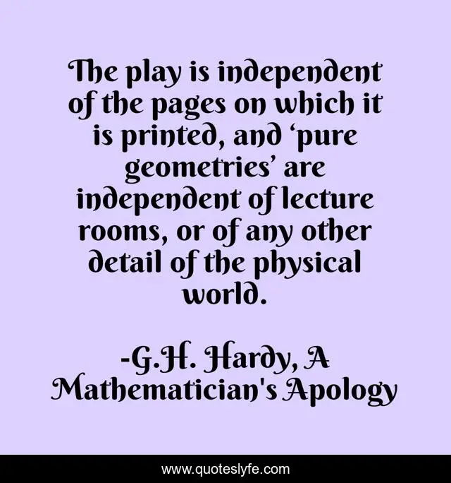 "G.H. Hardy, A Mathematician's Apology Quotes." Quoteslyfe.com, 2025. Mon. 08 Dec. 2025. <https://www.quoteslyfe.com/quote/The-play-is-independent-of-the-pages-247222>.