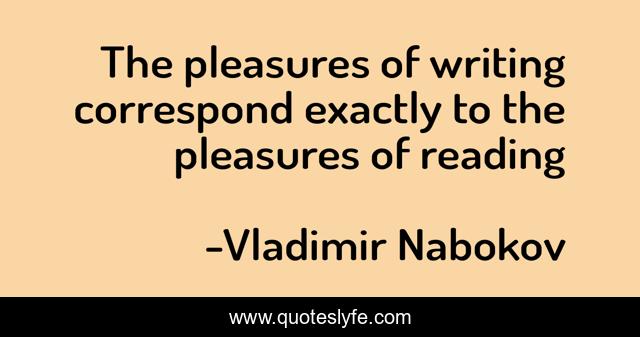 This page presents the quote "The pleasures of writing correspond exactly to the pleasures of reading". Author of this quote is Vladimir Nabokov. This quote is about pleasure, literature, fiction,.