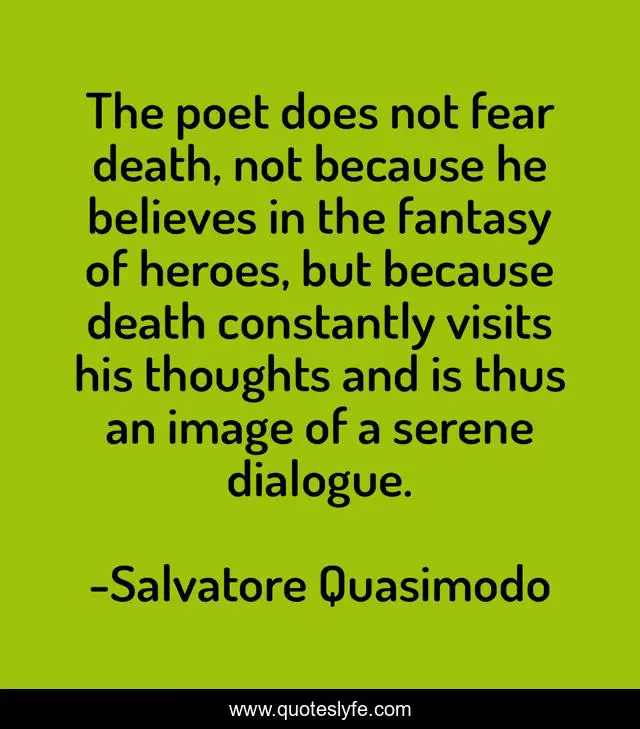 "Salvatore Quasimodo Quotes." Quoteslyfe.com, 2025. Sun. 07 Dec. 2025. <https://www.quoteslyfe.com/quote/The-poet-does-not-fear-death-not-295326>.