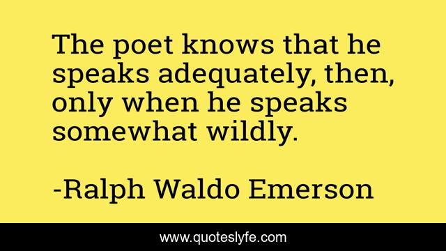 This page presents the quote "The poet knows that he speaks adequately, then, only when he speaks somewhat wildly.". Author of this quote is Ralph Waldo Emerson. This quote is about chaos, language, poetry,.