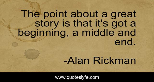 This page presents the quote "The point about a great story is that it's got a beginning, a middle and end.". Author of this quote is Alan Rickman. This quote is about beginning, story, end,.