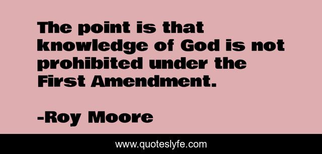 This page presents the quote "The point is that knowledge of God is not prohibited under the First Amendment.". Author of this quote is Roy Moore. This quote is about first amendment, knowledge,.