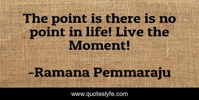 This page presents the quote "The point is there is no point in life! Live the Moment!". Author of this quote is Ramana Pemmaraju. This quote is about psychology, life-lessons, point-of-view,.
