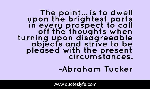 This page presents the quote "The point... is to dwell upon the brightest parts in every prospect to call off the thoughts when turning upon disagreeable objects and strive to be pleased with the present circumstances.". Author of this quote is Abraham Tucker. .