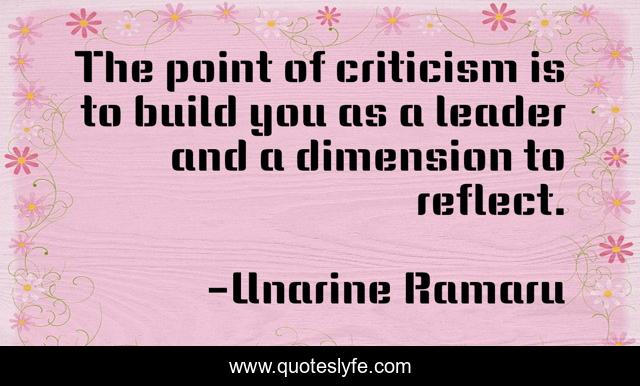 This page presents the quote "The point of criticism is to build you as a leader and a dimension to reflect.". Author of this quote is Unarine Ramaru. This quote is about criticism, development, reflection, success, selective-thinking, judgement, leadership, working-hard,.