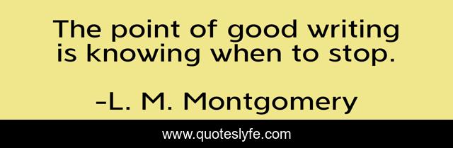 This page presents the quote "The point of good writing is knowing when to stop.". Author of this quote is L. M. Montgomery. This quote is about control, self,.