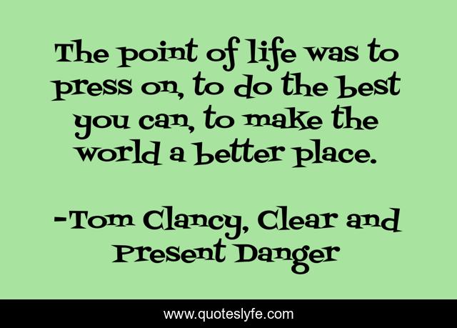 This page presents the quote "The point of life was to press on, to do the best you can, to make the world a better place.". Author of this quote is Tom Clancy, Clear and Present Danger. .