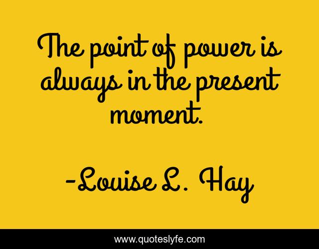 This page presents the quote "The point of power is always in the present moment.". Author of this quote is Louise L. Hay. This quote is about moment, present,.
