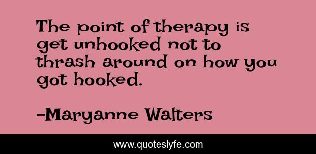 This page presents the quote "The point of therapy is get unhooked not to thrash around on how you got hooked.". Author of this quote is Maryanne Walters. .