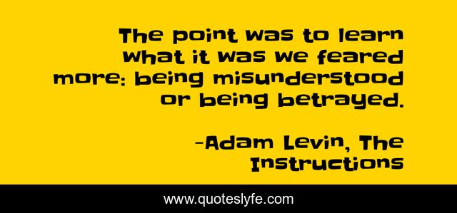 This page presents the quote "The point was to learn what it was we feared more: being misunderstood or being betrayed.". Author of this quote is Adam Levin, The Instructions. This quote is about fear, betrayal, misunderstood,.