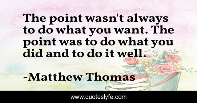 This page presents the quote "The point wasn't always to do what you want. The point was to do what you did and to do it well.". Author of this quote is Matthew Thomas. This quote is about life-philosophy, inspirational, enthusiasm,.
