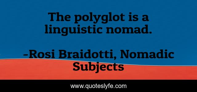 This page presents the quote "The polyglot is a linguistic nomad.". Author of this quote is Rosi Braidotti, Nomadic Subjects. This quote is about multilinguism, nomadism, language,.