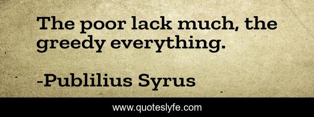 "Publilius Syrus Quotes." Quoteslyfe.com, 2025. Sat. 06 Dec. 2025. <https://www.quoteslyfe.com/quote/The-poor-lack-much-the-greedy-everything-145422>.