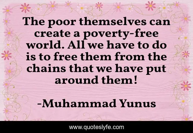 "Muhammad Yunus Quotes." Quoteslyfe.com, 2025. Fri. 05 Dec. 2025. <https://www.quoteslyfe.com/quote/The-poor-themselves-can-create-a-poverty-10122>.