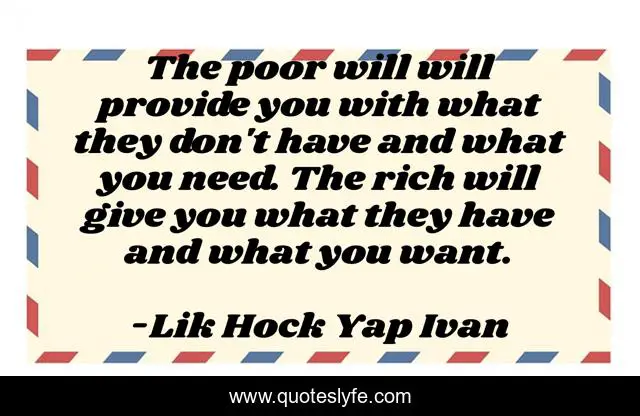 "Lik Hock Yap Ivan Quotes." Quoteslyfe.com, 2025. Sat. 06 Dec. 2025. <https://www.quoteslyfe.com/quote/The-poor-will-will-provide-you-with-120549>.