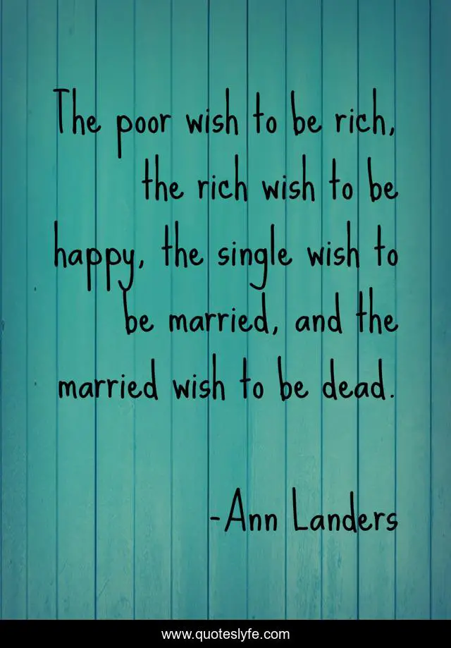 This page presents the quote "The poor wish to be rich, the rich wish to be happy, the single wish to be married, and the married wish to be dead.". Author of this quote is Ann Landers. This quote is about marriage, poverty, happiness,.