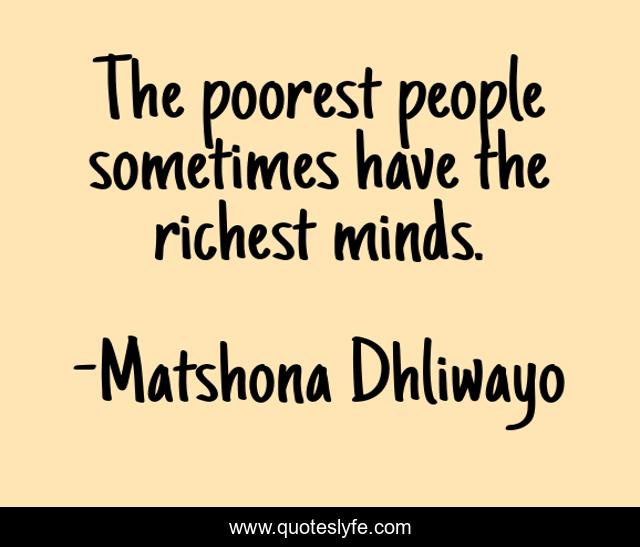 "Matshona Dhliwayo Quotes." Quoteslyfe.com, 2025. Sat. 06 Dec. 2025. <https://www.quoteslyfe.com/quote/The-poorest-people-sometimes-have-the-richest-207543>.