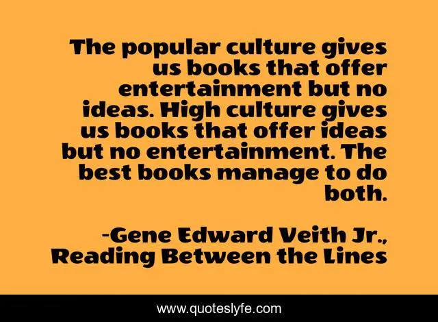"Gene Edward Veith Jr., Reading Between the Lines Quotes." Quoteslyfe.com, 2025. Sat. 06 Dec. 2025. <https://www.quoteslyfe.com/quote/The-popular-culture-gives-us-books-that-112046>.
