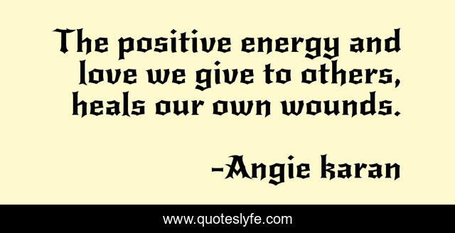 This page presents the quote "The positive energy and love we give to others, heals our own wounds.". Author of this quote is Angie karan. This quote is about positive-energy, energy, healing, wounds, positivity,.