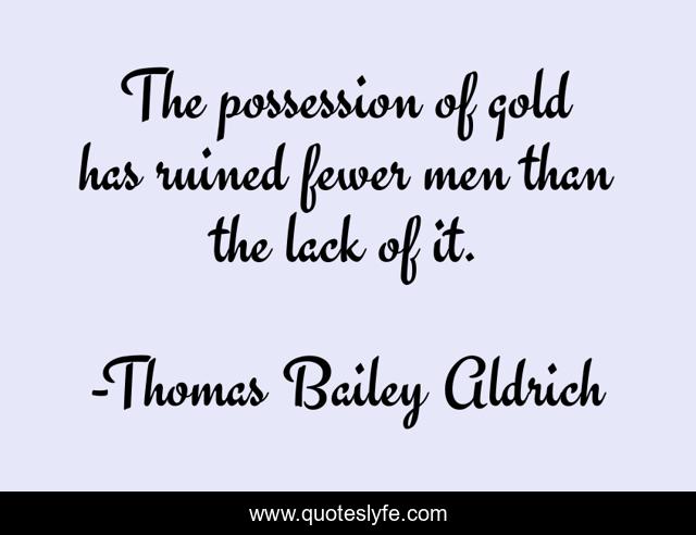 This page presents the quote "The possession of gold has ruined fewer men than the lack of it.". Author of this quote is Thomas Bailey Aldrich. This quote is about possession, ownership,.