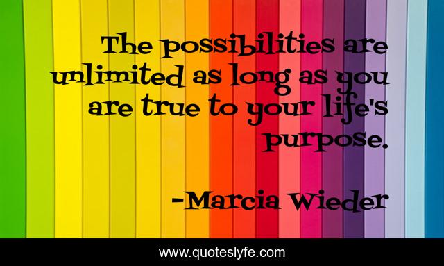 This page presents the quote "The possibilities are unlimited as long as you are true to your life's purpose.". Author of this quote is Marcia Wieder. .