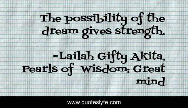 "Lailah Gifty Akita, Pearls of Wisdom: Great mind Quotes." Quoteslyfe.com, 2025. Tue. 09 Dec. 2025. <https://www.quoteslyfe.com/quote/The-possibility-of-the-dream-gives-strength-13015>.