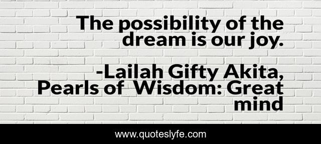"Lailah Gifty Akita, Pearls of Wisdom: Great mind Quotes." Quoteslyfe.com, 2025. Sat. 06 Dec. 2025. <https://www.quoteslyfe.com/quote/The-possibility-of-the-dream-is-our-95236>.