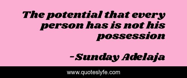 This page presents the quote "The potential that every person has is not his possession". Author of this quote is Sunday Adelaja. This quote is about person, potential,.