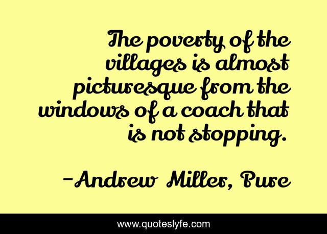This page presents the quote "The poverty of the villages is almost picturesque from the windows of a coach that is not stopping.". Author of this quote is Andrew Miller, Pure. This quote is about scenery, old-times, poverty,.