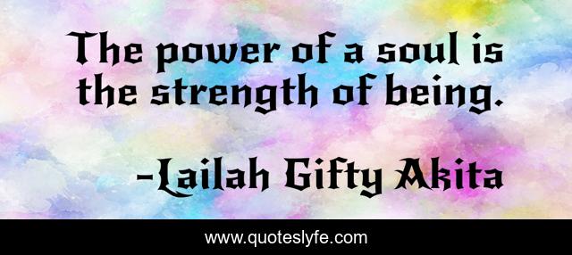 This page presents the quote "The power of a soul is the strength of being.". Author of this quote is Lailah Gifty Akita. This quote is about wisdom-of-lailah-gifty-akita, strength, soul,.