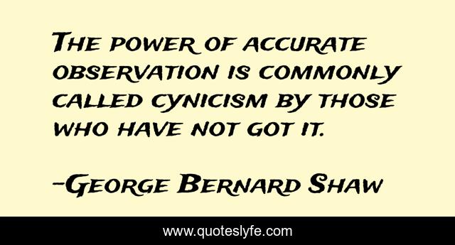 This page presents the quote "The power of accurate observation is commonly called cynicism by those who have not got it.". Author of this quote is George Bernard Shaw. This quote is about got, observation, cynicism,.