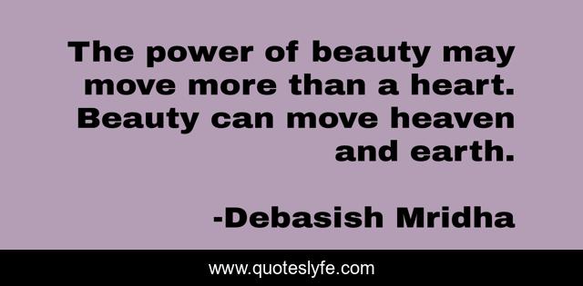 This page presents the quote "The power of beauty may move more than a heart. Beauty can move heaven and earth.". Author of this quote is Debasish Mridha. This quote is about heart, philosophy, heaven-and-earth, beauty, mridha, debasish, debasish-mridha, inspirational, enthusiasm,.