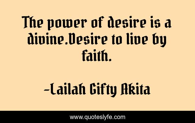 This page presents the quote "The power of desire is a divine.Desire to live by faith.". Author of this quote is Lailah Gifty Akita. This quote is about desire, faith, divine-love, divine-intuition, divine-grace, divine-inspiration, desire-to-live, faith-in-god,.