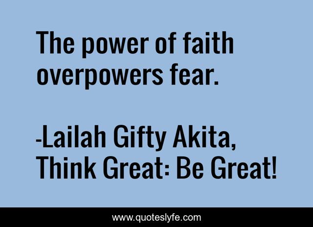 "Lailah Gifty Akita, Think Great: Be Great! Quotes." Quoteslyfe.com, 2025. Fri. 05 Dec. 2025. <https://www.quoteslyfe.com/quote/The-power-of-faith-overpowers-fear-94983>.