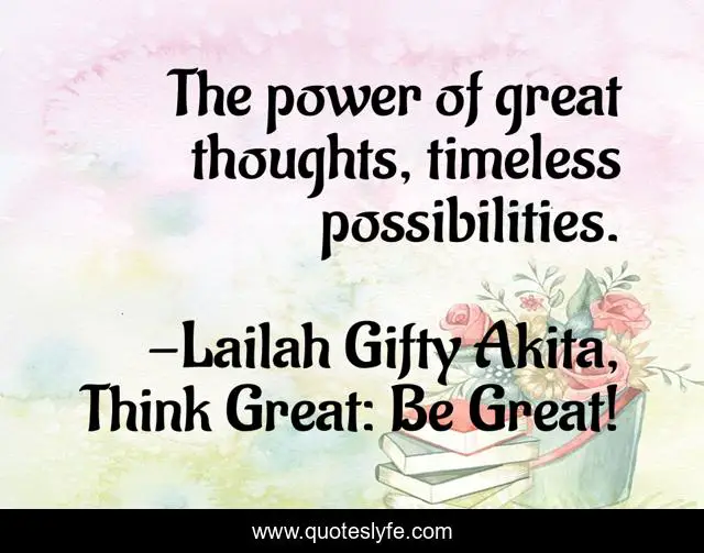 "Lailah Gifty Akita, Think Great: Be Great! Quotes." Quoteslyfe.com, 2025. Fri. 05 Dec. 2025. <https://www.quoteslyfe.com/quote/The-power-of-great-thoughts-timeless-possibilities-87533>.