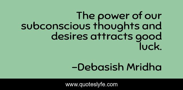 This page presents the quote "The power of our subconscious thoughts and desires attracts good luck.". Author of this quote is Debasish Mridha. This quote is about attracts-good-luck, power-of-the-subconsious, philosophy, debasish-mridha, quotes, inspirational, enthusiasm, good-luck, debasish-mridha-m-d,.