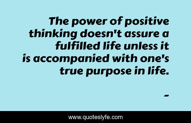 This page presents the quote "The power of positive thinking doesn't assure a fulfilled life unless it is accompanied with one's true purpose in life.". Author of this quote is . This quote is about living-a-fulfilled-life, edmond-mbiaka, the-power-of-positive-thinking, your-true-purpose-in-life, positive-thinking, thinking-positively, one-true-purpose-in-life,.