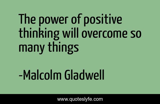 "Malcolm Gladwell Quotes." Quoteslyfe.com, 2025. Mon. 08 Dec. 2025. <https://www.quoteslyfe.com/quote/The-power-of-positive-thinking-will-overcome-94801>.