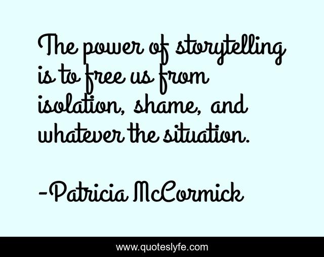 This page presents the quote "The power of storytelling is to free us from isolation, shame, and whatever the situation.". Author of this quote is Patricia McCormick. This quote is about isolation, free,.