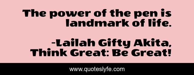 "Lailah Gifty Akita, Think Great: Be Great! Quotes." Quoteslyfe.com, 2025. Mon. 08 Dec. 2025. <https://www.quoteslyfe.com/quote/The-power-of-the-pen-is-landmark-34645>.