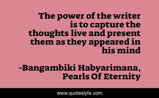 "Bangambiki Habyarimana, Pearls Of Eternity Quotes." Quoteslyfe.com, 2025. Mon. 08 Dec. 2025. <https://www.quoteslyfe.com/quote/The-power-of-the-writer-is-to-108099>.