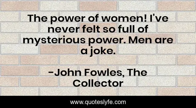 "John Fowles, The Collector Quotes." Quoteslyfe.com, 2025. Tue. 09 Dec. 2025. <https://www.quoteslyfe.com/quote/The-power-of-women-I-ve-never-102323>.